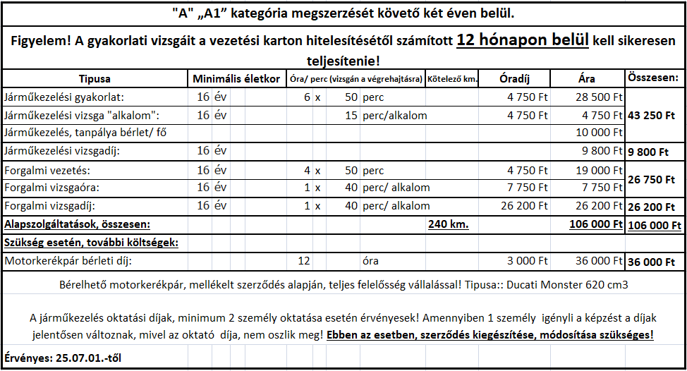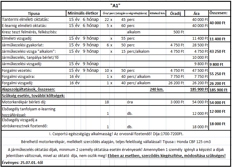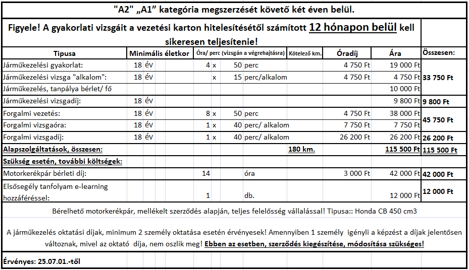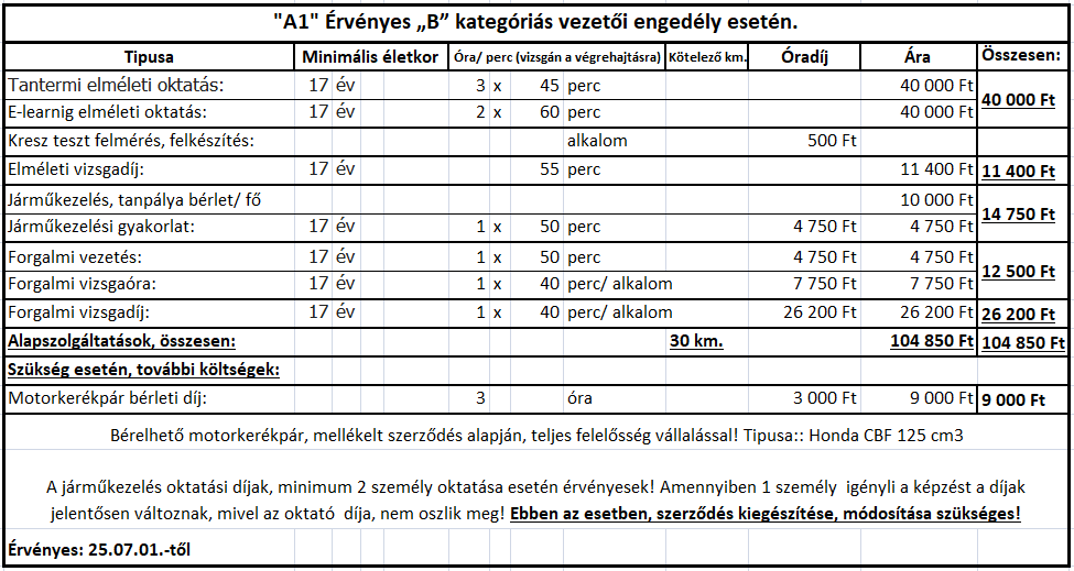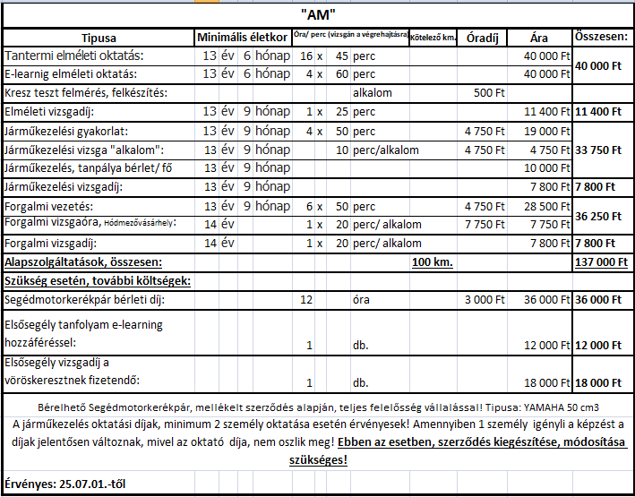 A támogatás mértéke a közlekedési alapismeretek tanfolyam díjának és a sikeres vizsga igazgatási szolgáltatási díjának ténylegesen megfizetett összege, legfeljebb azonban huszonötezer forint.